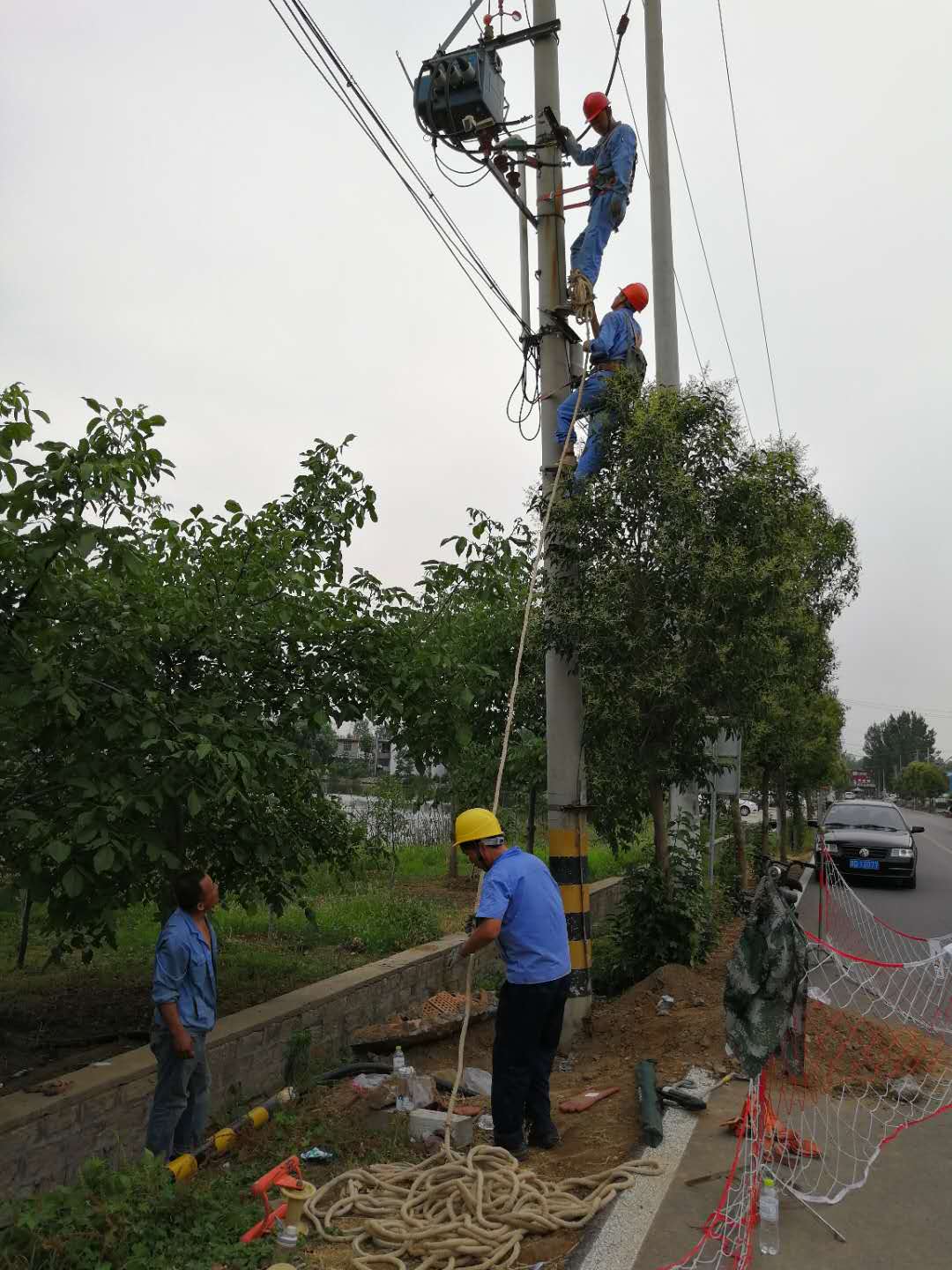 雨后的天氣,濕氣重,悶熱;鹄崩钡奶栒盏么蟮貪L燙滾燙的,似乎大地都在冒煙,人,就是一動不動也是汗流不止,空氣中沒有一絲兒微風。周末,公司組織行管后勤、車間和項目部人員赴恒達工地施工。挪箱變、挖地溝、架橋線、抽舊纜-----施工環(huán)境特別惡劣,時間限制特別緊張,面對這種局面,21名同志開動腦筋,甩開膀子,團結(jié)聚力,大干苦干,硬是順暢、圓滿地完成了任務。