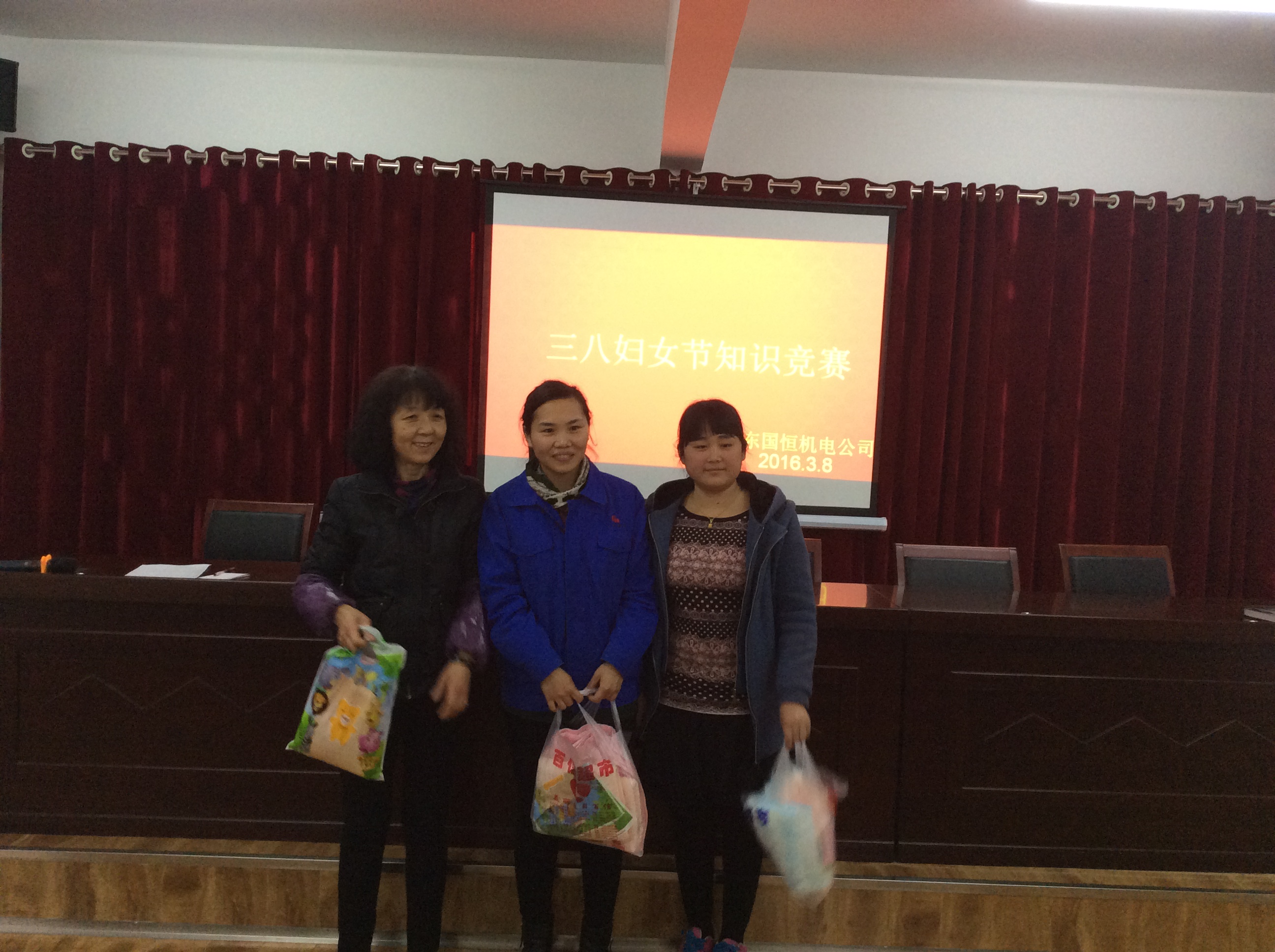 節(jié)目最后,女職工們收到公司贈(zèng)送的禮物。我代表全體女職工向公司領(lǐng)導(dǎo)表示感謝,感謝對(duì)我們女職工的關(guān)愛!